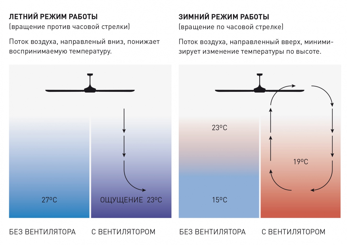 Без имени-1.jpg    Потолочный вентилятор переносит теплый воздух, смешивая его с прохладным, что позволяет создать равномерную температуру          во всем помещении.