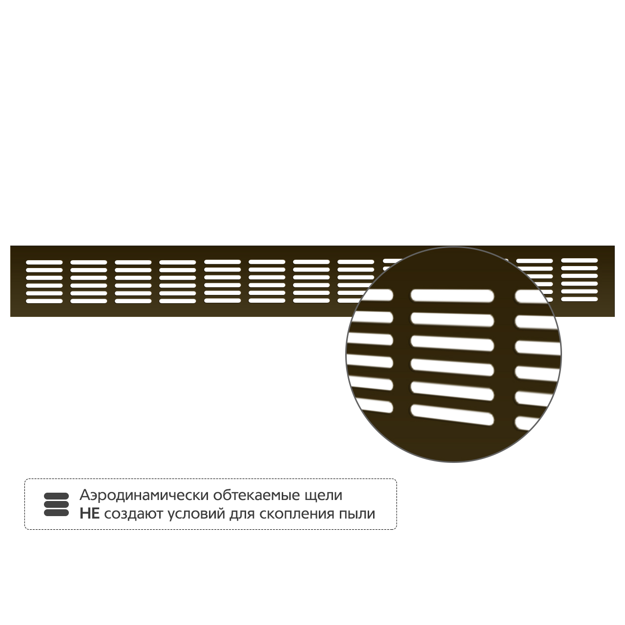 Аэродинамически обтекаемые щели не создают условий для скопления пыли -