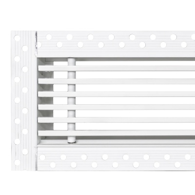 Данная решетка подходит для монтажа на любую поверхность под финишную отделку. Рамка и экран изготовлены из алюминия, опора экрана - из оцинкованной стали. Рама оснащена «полкой» 1,9 мм и рифлеными краями для большей адгезии финишного материала – шпатлевки, цемента. Решетка имеет съемную центральную часть с фиксированным углом наклона ламелей 15°. Она крепится к корпусу прочными металлическими тросиками, легко снимается для очистки и удобного обслуживания.