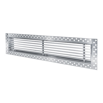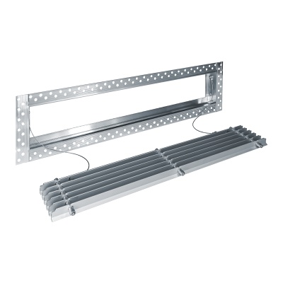 Данная решетка подходит для монтажа на любую поверхность под финишную отделку. Рама оснащена «полкой» 1,9 мм и рифлеными краями для большей адгезии финишного материала – шпатлевки, цемента. Решетка имеет съемную центральную часть с декоративным экраном. Она крепится к корпусу прочными металлическими тросиками, легко снимается для очистки и удобного обслуживания.