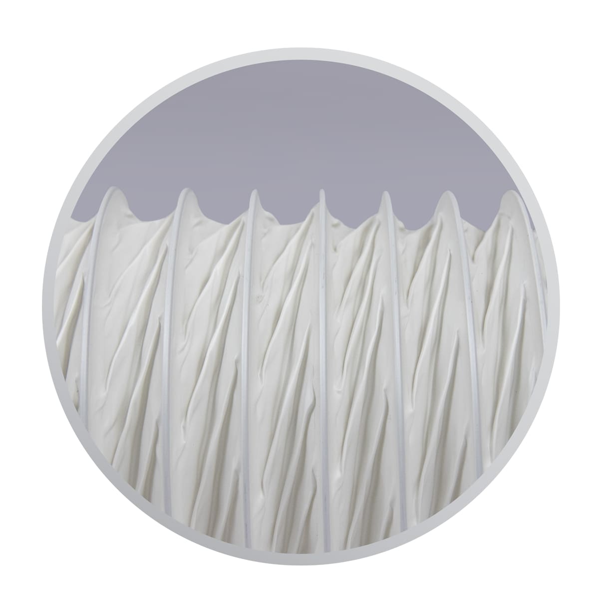 Толщина ПВХ-материала и спирали PVC больше, чем у полимерных воздуховодов большинства других производителей. Они способны поглощать длительную вибрацию и выдерживать максимальное рабочее давление +3000 Па.