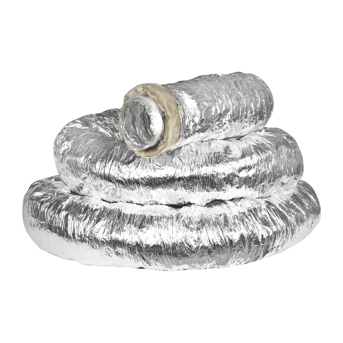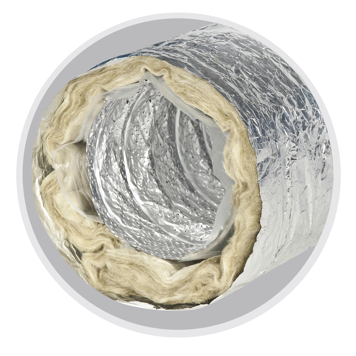 Наружный слой из алюминия, ламинированного полиэстером, надежно защищает изоляционный материал и внутренний воздуховод от деформации, нарушения целостности.